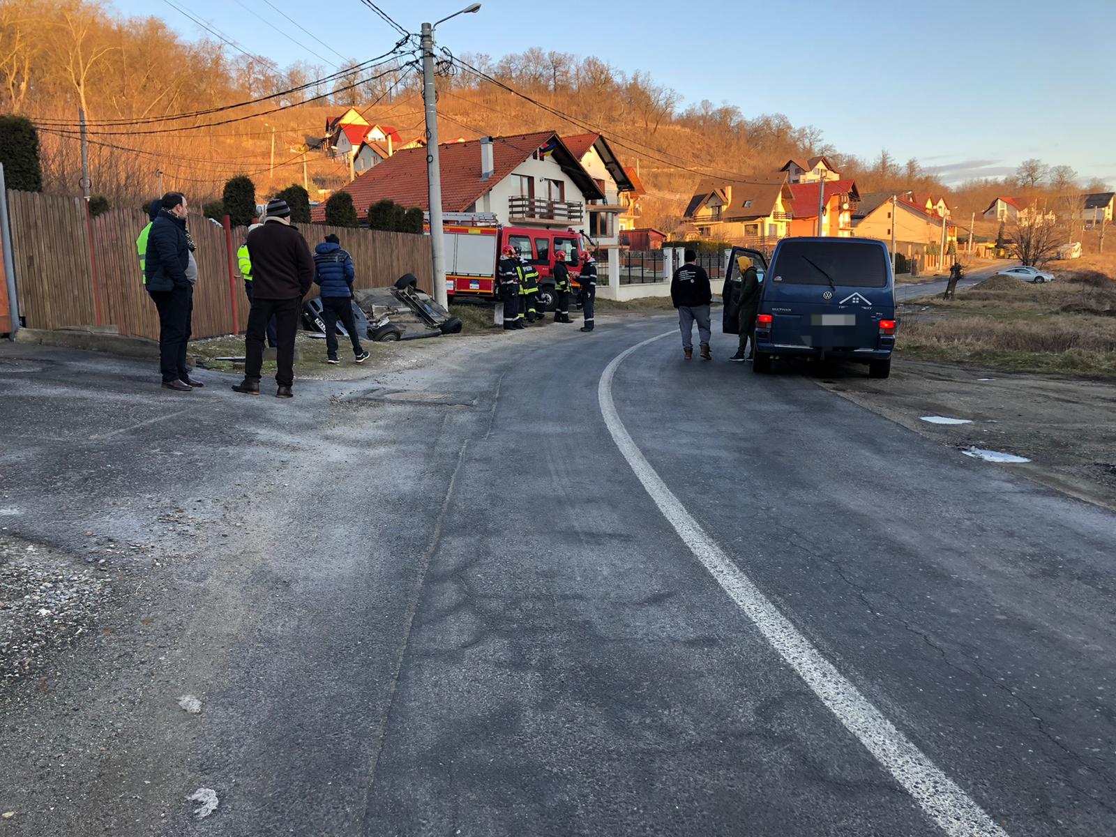 Galerie Foto: S-a răsturnat cu mașina la ieșire din Mediaș spre Ighișul Nou